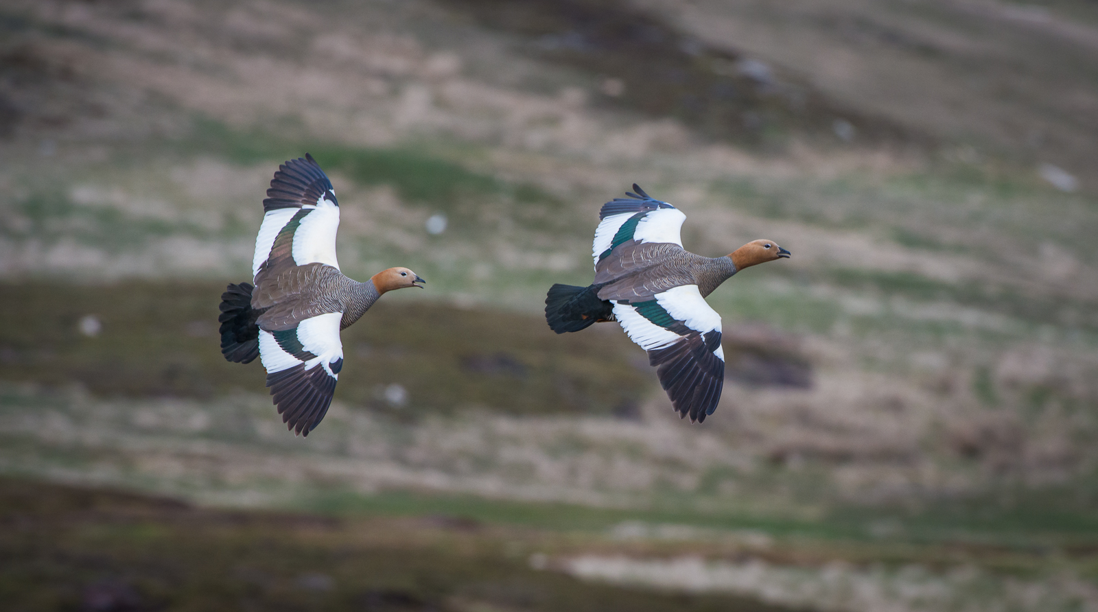 The Falkland Islands are known for penguins. But there are also a lot of geese. And when I say a lot, I mean it. Kelp geese, upland geese, and these guys, ruddy headed geese were everywhere. Always nice to get flight shots, and I captured this one late in the day on Carcass Island.