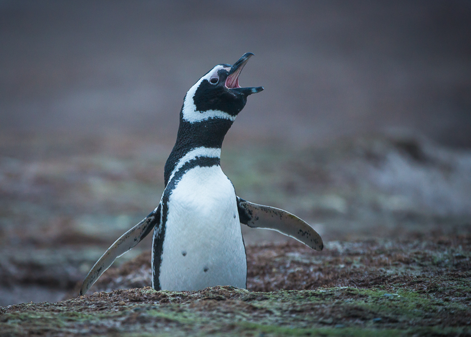This is a Magellanic penguin — more commonly known as a jackass penguin by the locals in the Falkland Islands. Not because it’s an idiotic bird, but because it brays like a donkey at dawn and dusk. This guy here was doing his best jackass impersonation just after the sun had set at Volunteer Point in East Falkland. Nikon D800 with Nikkor 200-400mm lens (at 340mm) ISO 1600, f/4 at 1/320th of a second