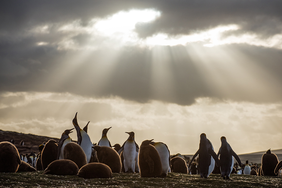 Here’s one with the adult kings mixed in. Volunteer Point in the Falkland Islands is the most accessible place in the world to see these iconic penguins (not that a four flight/two day journey is especially accessible). The Falklands are at the northern edge of the king’s territory, which extends south into Antarctica. The weather in the Falklands is ever changing and you never know when the sky might open up like it did on this particular afternoon. Nikon D810 with Nikkor 70-200mm lens (at 160mm) ISO 400, f/8 at 1/2500th of a second