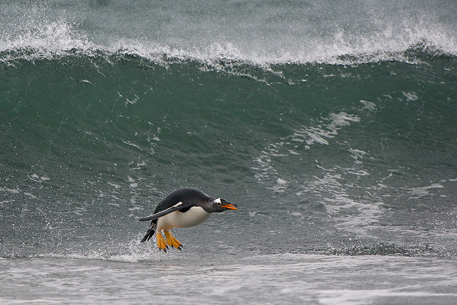 Just back from a great trip to the Falklands and need to sleep so I’ll make this quick. I photographed five different species of penguin as well as sea lions, seals, orcas and many other birds over the past two weeks. This is the gentoo penguin. I like to think of these guys as the classic penguins. They also happen to be the most acrobatic in the water and are known for their “porpoising” and riding waves. This guy is about to catch a nice one on his way back in to shore after an afternoon of fishing. Nikon D800 with Nikkor 200-400mm lens (at 400mm) ISO 800, f/5.6 at 1/3200th of a second