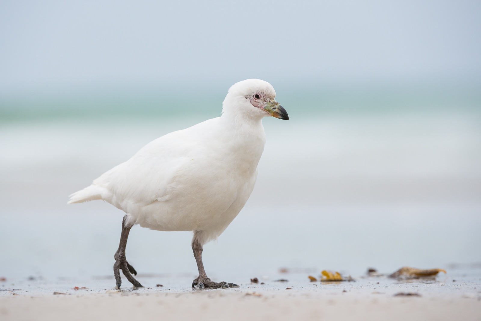 The pale-faced sheathbill is the only land bird native to the Antarctic continent. I photographed this one in the Falkland Islands. Also known as the snowy sheathbill, greater sheathbill and paddy, it’s certainly not going to win any beauty contests. That said, its looks are perhaps its most charming characteristic. Not having webbed feet, this shorebird does not fish but instead finds its food on land by scavenging. It will eat almost anything, including but not limited to regurgitated food from penguins, penguin eggs, and if the opportunity presents itself, penguin chicks. But that’s when it’s living clean. It will also eat carrion, animal feces, and, if and when available, human waste. It has even been known to eat tapeworms that have been living inside a penguin’s intestines. There’s probably a reason, I’ve never posted a pale-faced sheathbill. Tomorrow I promise to return with something slightly more adorable. Nikon D800 with Nikkor 200-400mm lens (at 330mm) ISO 800, f/5.6 at 1/1250th of a second.