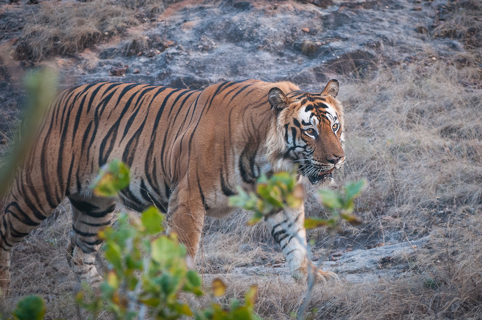 In my ten day safari in India, I saw a grand total of three tigers. Two males and this female. She was considerably smaller and less bulky than the males. She also offered more of an unobstructed view before disappearing into the forest. Photographed in Bandhavgarh National Park. Nikon D300 with Nikkor 200-400mm lens (at 400mm) ISO 800, f/4 at 1/200th of a second.