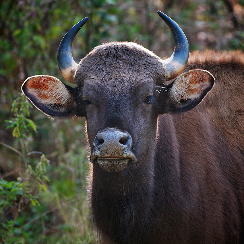 The gaur is the largest bovine native to Southeast Asia. It is also appropriately known as the Indian bison. I photographed these two in Kanha National Park in India. I liked the view from behind, but thought I’d show a front view as well. The top photo is an older, more mature male, while the bottom photo is a younger individual. Top Photo: Nikon D300 with Nikkor 200-400mm lens (at 400mm) ISO 800, f/4 at 1/160th of a second
