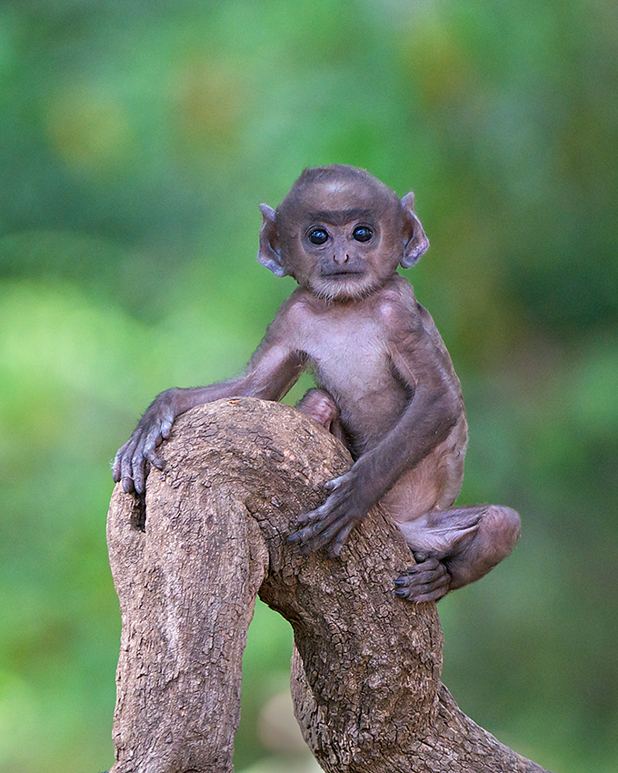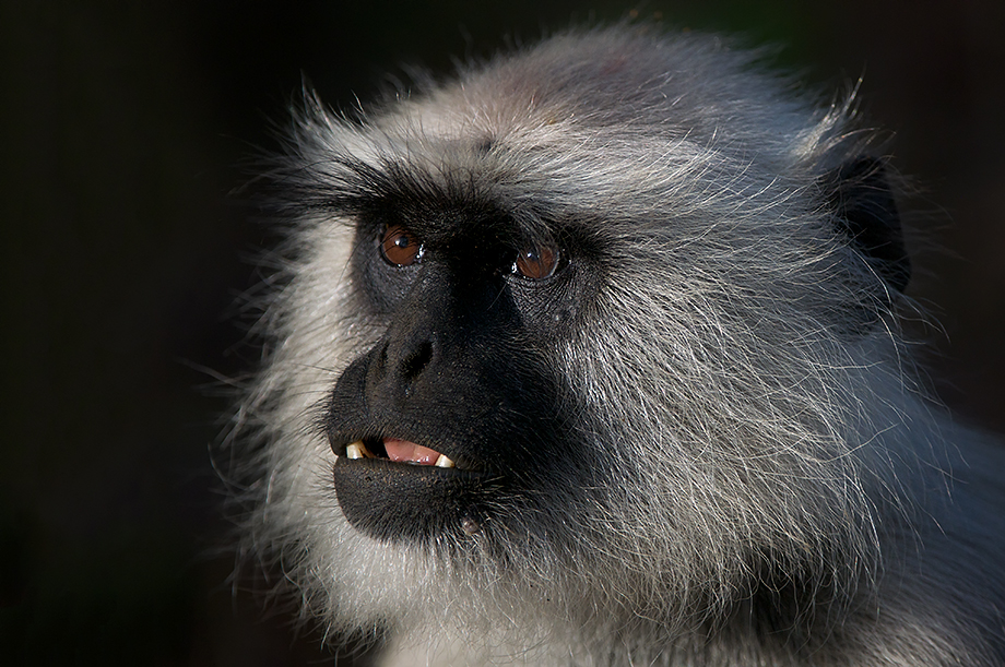 This is a gray langur, also known as a hanuman langur, and I met the little guy in Bandhavgarh National Park in India. I saw quite a few of these monkeys, including lots of mothers with babies. Langurs practice what is known as alloparenting, meaning that the infant is eventually given to other mothers in the group to raise as their own. Nikon D300 with Nikkor 200-400mm lens (at 310mm) ISO 800, f/4 at 1/250th of a second