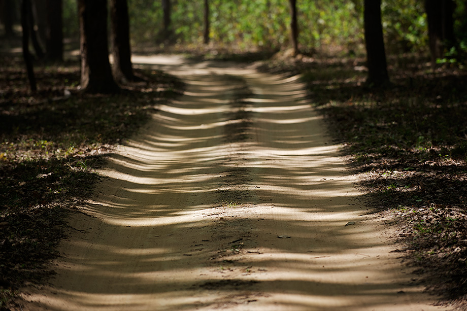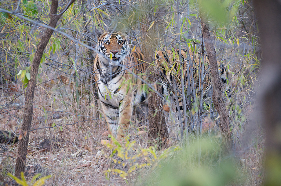 This was the first glimpse I had of a tiger in the wild — it’s the same large male that I posted two photos of a few weeks ago. It’s rare to actually see tigers out in the open, which is why I liked the way that this guy was framed by all the natural foliage.