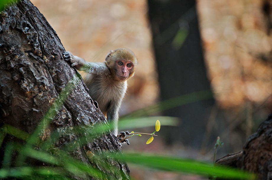 This is the other species of monkey that I saw in India — the rhesus macaque. I didn’t see as many of these guys as the langurs, but they are much more common and widespread. In fact, this is one of the most common monkeys in the world and there is even a wild population living in Florida — non-native, of course — that took hold after a tour operator released them in the Silver River State Park area to enhance his tour experience. I would see these monkeys a lot in the little towns that I drove through on my way from one park to the other, but rarely saw them in the actual parks.