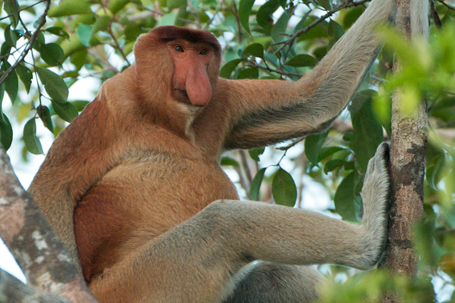 Again, I offer up one of nature’s truly handsome creatures — this time a little more of a close up so you can really appreciate that face. The male proboscis monkey is also known as the Dutch monkey, or simply Dutchman, as the native Borneans felt that with the large nose and belly, the monkeys looked an awful lot like the Dutch colonizers.