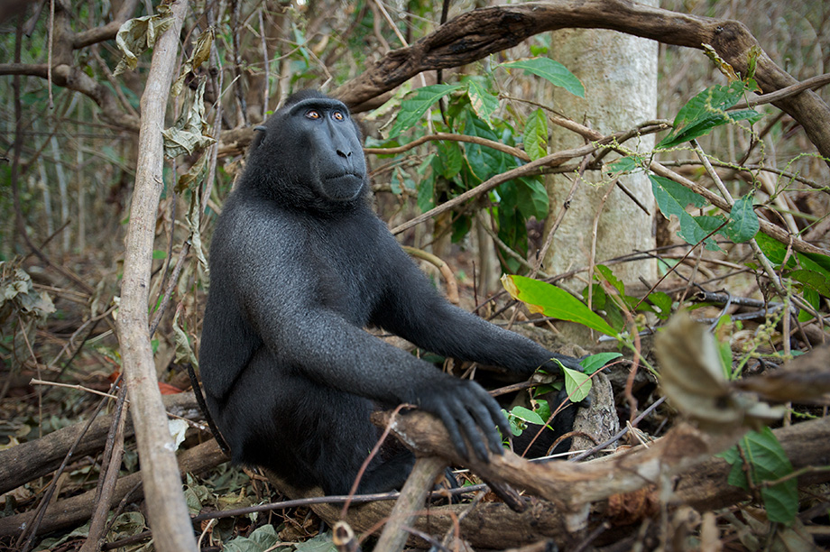 If you’ve been checking out my posts for a while, you know that the black-crested macaques are one of my favorite subjects. They are listed as critically endangered, having lost 80% of their population in the last 40 years. This one seems to be contemplating that fact. The reason for the population decline is mainly due to habitat loss. They live only in Tangkoko National Park on the northern tip of the island of Sulawesi in Indonesia.