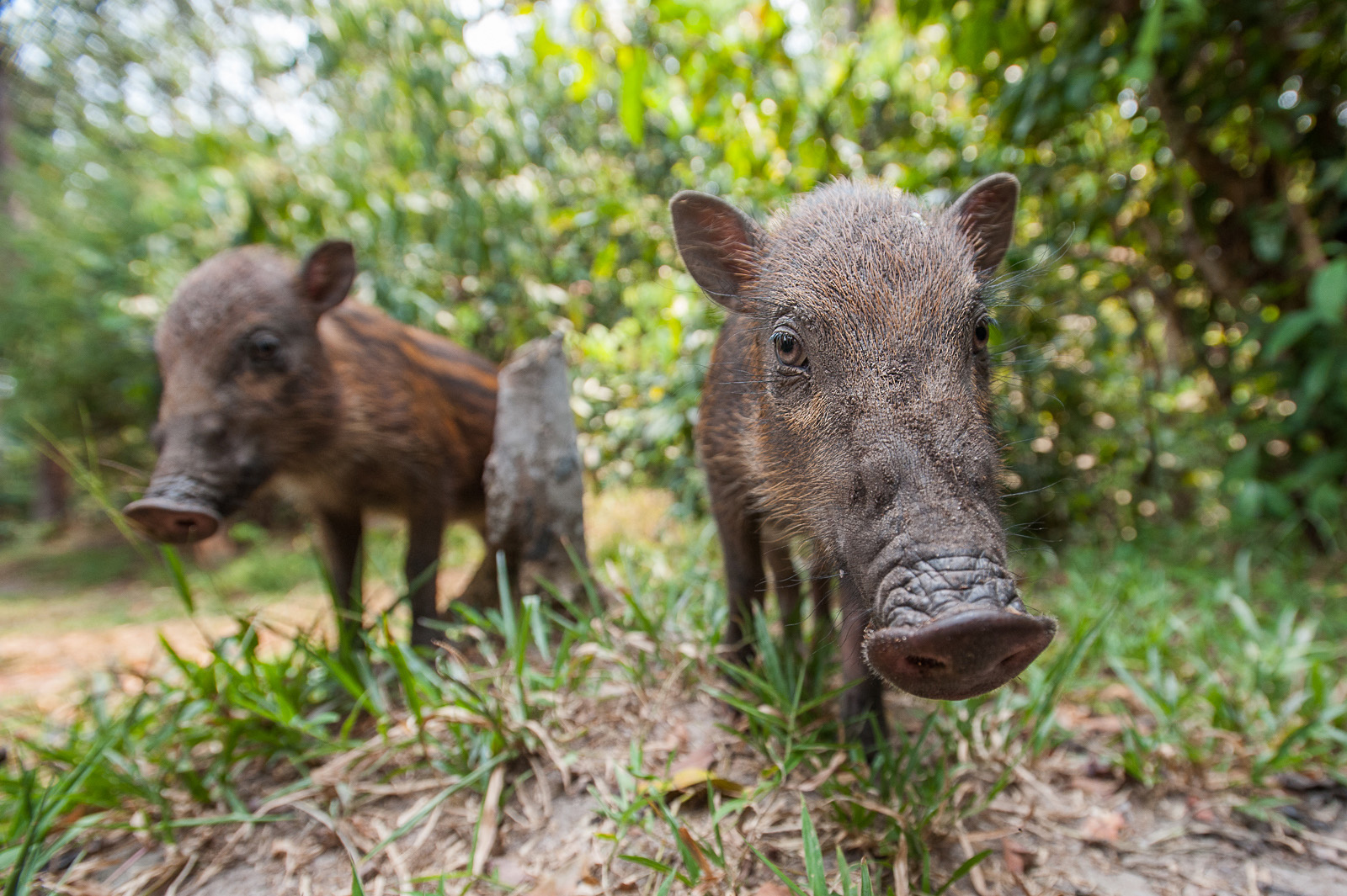 I’ve posted a few shots of these bearded piglets before. Here’s another view. I had been shooting them with a longer lens and intrigued by the sound of the shutter, they came closer to investigate. This gave me an opportunity to pull out my wide angle. We were in Tanjung Puting National Park in Borneo. Nikon D700 with Nikkor 17-35mm lens (at 17mm) ISO 800, f/4.5 at 1/640th of a second