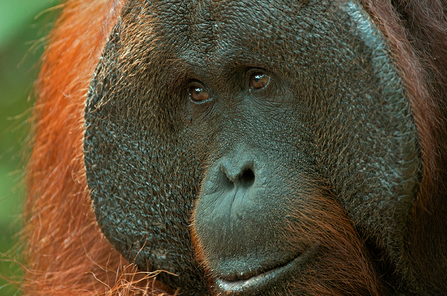 Male Bornean orangutans have faces that are more dish-shaped than the females. They also have huge cheek flaps that extend from the face, almost like horse blinders. This guy was the alpha male at Tanjung Puting when I visited there a few years back. He was the only orangutan that even the guides would steer well clear of. Lucky for me, I had the equivalent of 600mm of optics between myself and those lovely cheek flaps. Nikon D300 with Nikkor 200-400mm lens (at 400mm) ISO 800, f/4 at 1/200th of a second