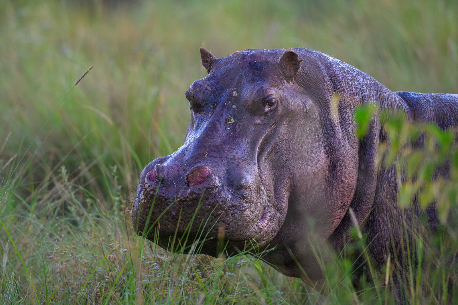 Something told us this hippo had recently been in some water lilies. In fact, hippos are often seen lounging or wading among blue water lilies, especially in calm, shallow waterways across Africa. These floating flowers thrive in the same warm, slow-moving waters that hippos prefer for staying cool during the heat of the day. While hippos don’t actively seek out the lilies for food, the plants offer shade and camouflage. Nikon Z8 with Nikkor 500mm PF lens, ISO 500, f/5.6 at 1/160th of a second.