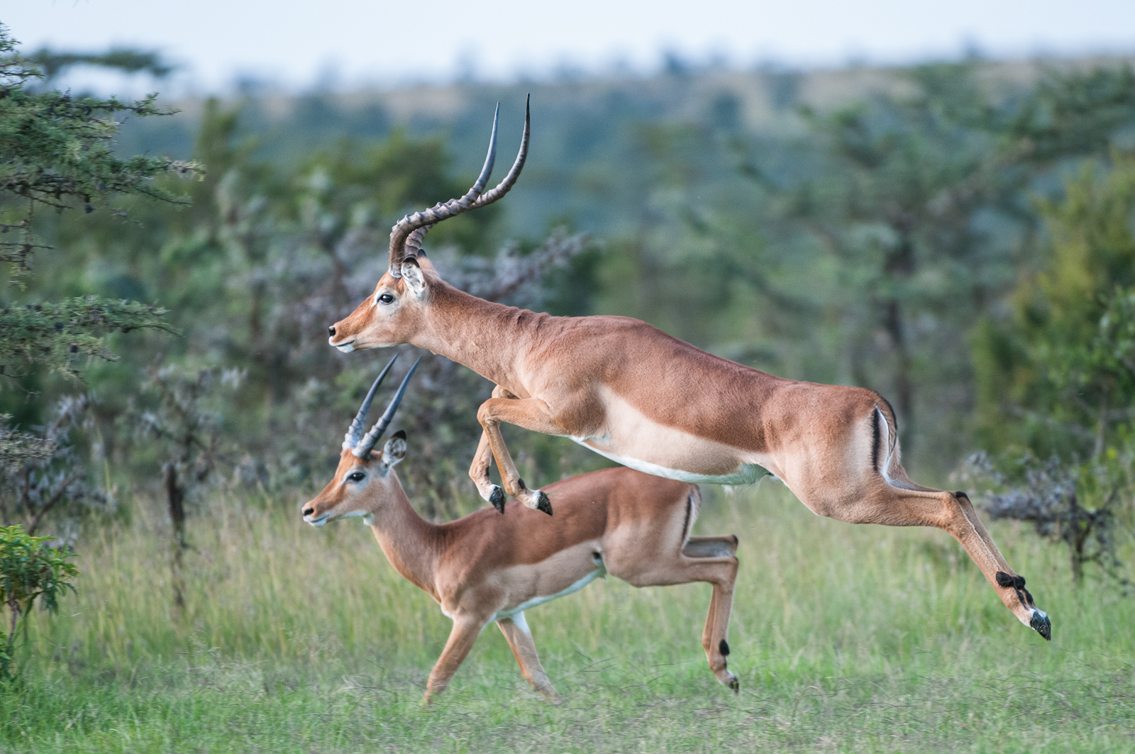 Impala are among the most graceful of Africa’s antelopes. They can run at speeds of almost 40 miles per hour and leap ten feet in the air while covering a distance of over 30 feet. I photographed these two in Ol Pajeta Conservancy in Laikipia, Kenya. Nikon D300 with Nikkor 200-400mm lens (at 380mm) ISO 800, f/4 at 1/640th of a second.