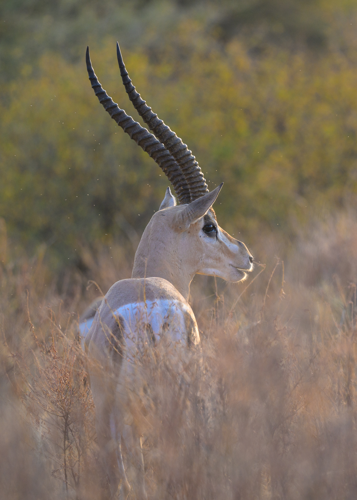 Male Grant’s gazelles have long, elegant horns, which can reach up to 32 inches. These ridged horns are used in ritualized combat with other males, locking and twisting in displays of strength to win mating rights. Unlike some antelopes, both sexes have horns, but the male’s are noticeably thicker, longer, and more deeply curved. The horns not only serve as weapons but also as visual signals of dominance and maturity. We primarily see the Grant’s gazelles in Samburu National Reserve in the north of Kenya, whereas the smaller Thomson’s gazelles are much more common in the Masai Mara in the south. Nikon Z8 with Nikkor 500mm PF lens, ISO 560, f/5.6 at 1/800th of a second.