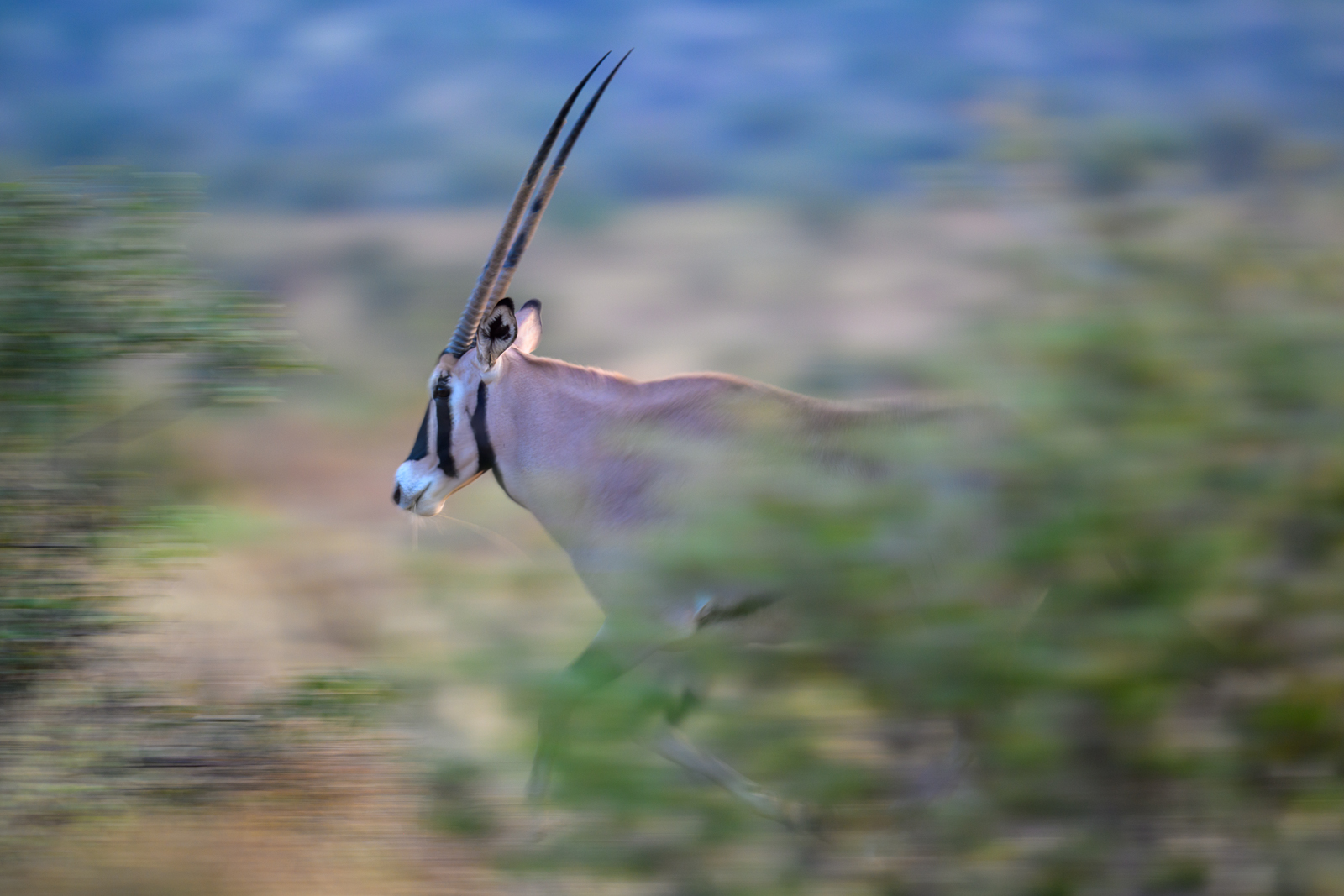 I was deliberately shooting at a slow shutter speed to get a sense of movement while panning with this beisa oryx. The foreground bushes added to the motion-blurred effect as the oryx ran through the scrub brush of Samburu National Reserve in Kenya. Nikon Z8 with Nikkor 500mm PF lens, ISO 180, f/5.6 at 1/30th of a second.