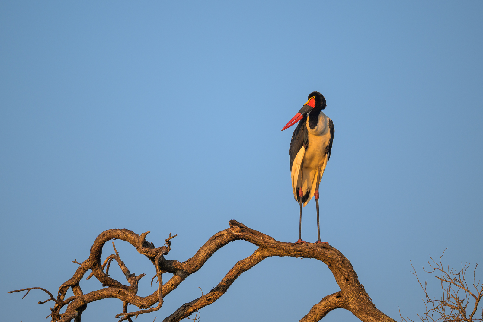 The saddle-billed stork is one of Africa’s tallest and most striking storks, standing up to five feet tall with a wingspan that can reach over nine feet. It gets its name from the bright yellow “saddle” shield at the base of its long red-and-black bill. Unlike many storks, it tends to be solitary or seen in pairs rather than in large flocks, stalking wetlands for fish, frogs, and other prey. It’s always a favorite sighting for guests on our African safaris. Nikon Z8 with Nikkor 500mm PF lens, ISO 125, f/5.6 at 1/500th of a second.