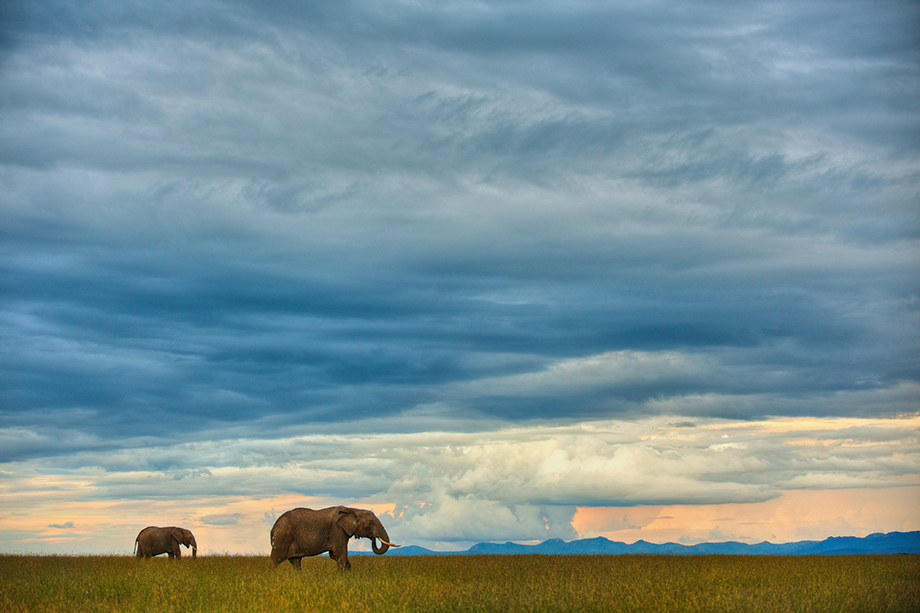 These elephants were grazing at twilight on the flat lands of the Laikipia Plateau in Kenya. Laikipia was once a cattle ranching area but was later reclaimed for wildlife conservation. As I’ve mentioned before, we were there during the short rains in November for a reason — the incredible skies like the one on this particular evening.