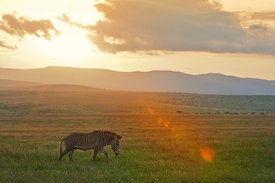 Grevy’s zebras are an endangered species that live only in northern Kenya and a few small pockets of Ethiopia. They are the largest wild member of the horse family and can weigh up to 990 pounds. Stallions that are unable to establish a territory become free ranging and are called bachelors — which appeared to be the case here, as this guy was wandering solo across the short grasses of Lewa Wildlife Conservancy in Kenya.