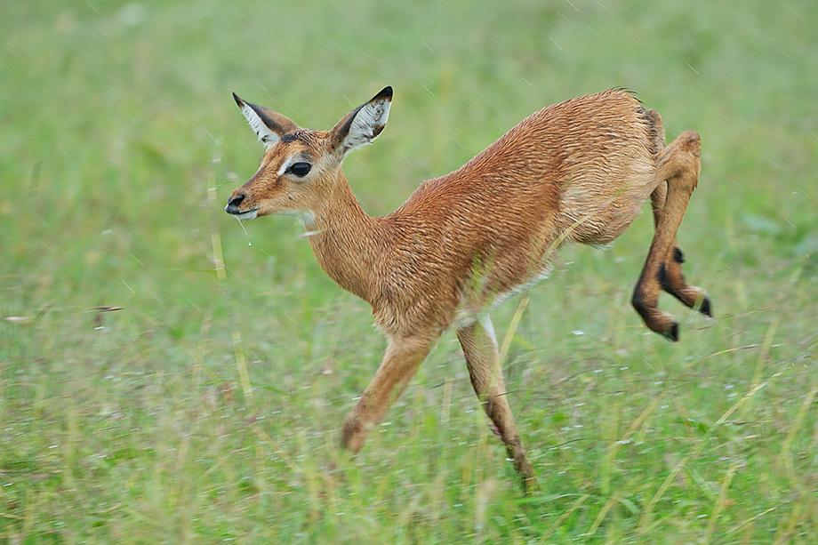 We were a little worried about this young impala when we first saw it all alone out on the Laikipia plains in Kenya. After galloping around in the rain for a bit, however, it ran toward a stand of trees where we saw what must have been mom, along with a few other adults.
