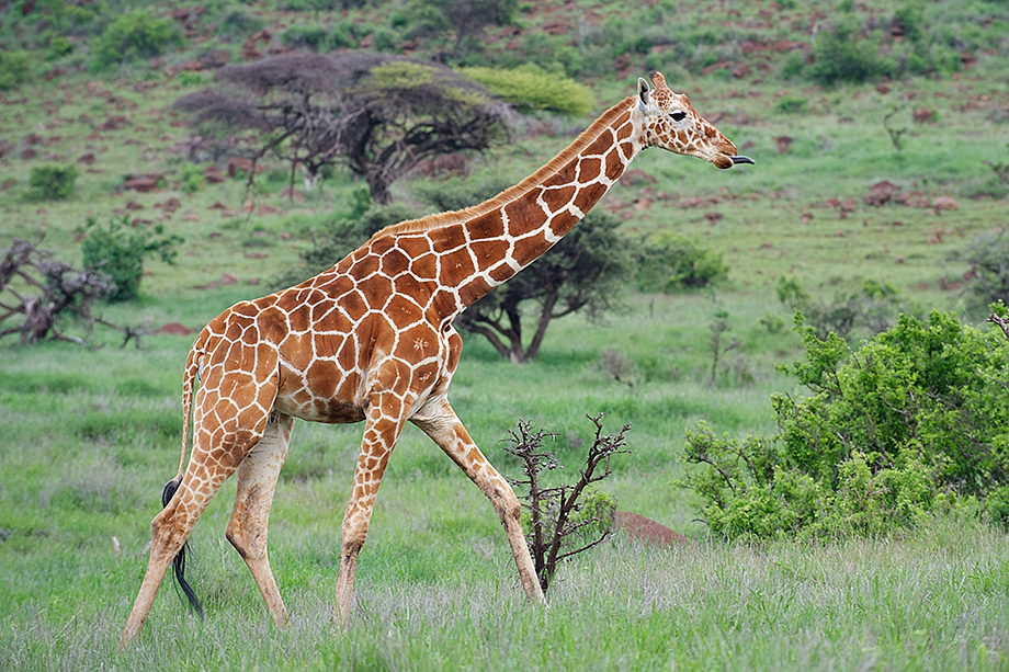While in the Lewa Wildlife Conservancy in Kenya, we were lucky to see both species of African rhinoceros, the white and the black. The names are somewhat misleading, as the two species aren’t really distinguishable by color but by other physical traits. The white rhino is larger and has a wide, square upper lip as opposed to the more pointed or hooked lip of the black rhino. Because of this, they are sometimes commonly known as the square-lipped rhino and the hook-lipped rhino. Black rhinos are also more rare and are listed as critically endangered. One subspecies, the western black rhinoceros was declared extinct just last year.