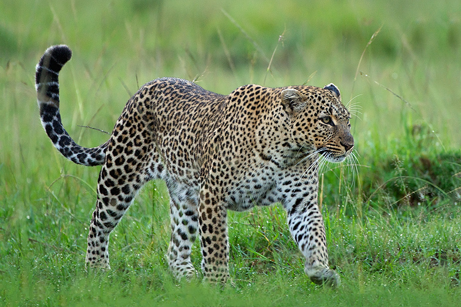 This leopard was in an area of the Masai Mara that didn’t allow off-road driving. We watched from quite a distance trying to predict which way she would move. Several other vehicles were in the area and we decided to distance ourselves as much as possible from them. It was the right decision. When the leopard finally started to move she came right toward us, passing about ten feet from our vehicle and allowing me to get some nice close ups.