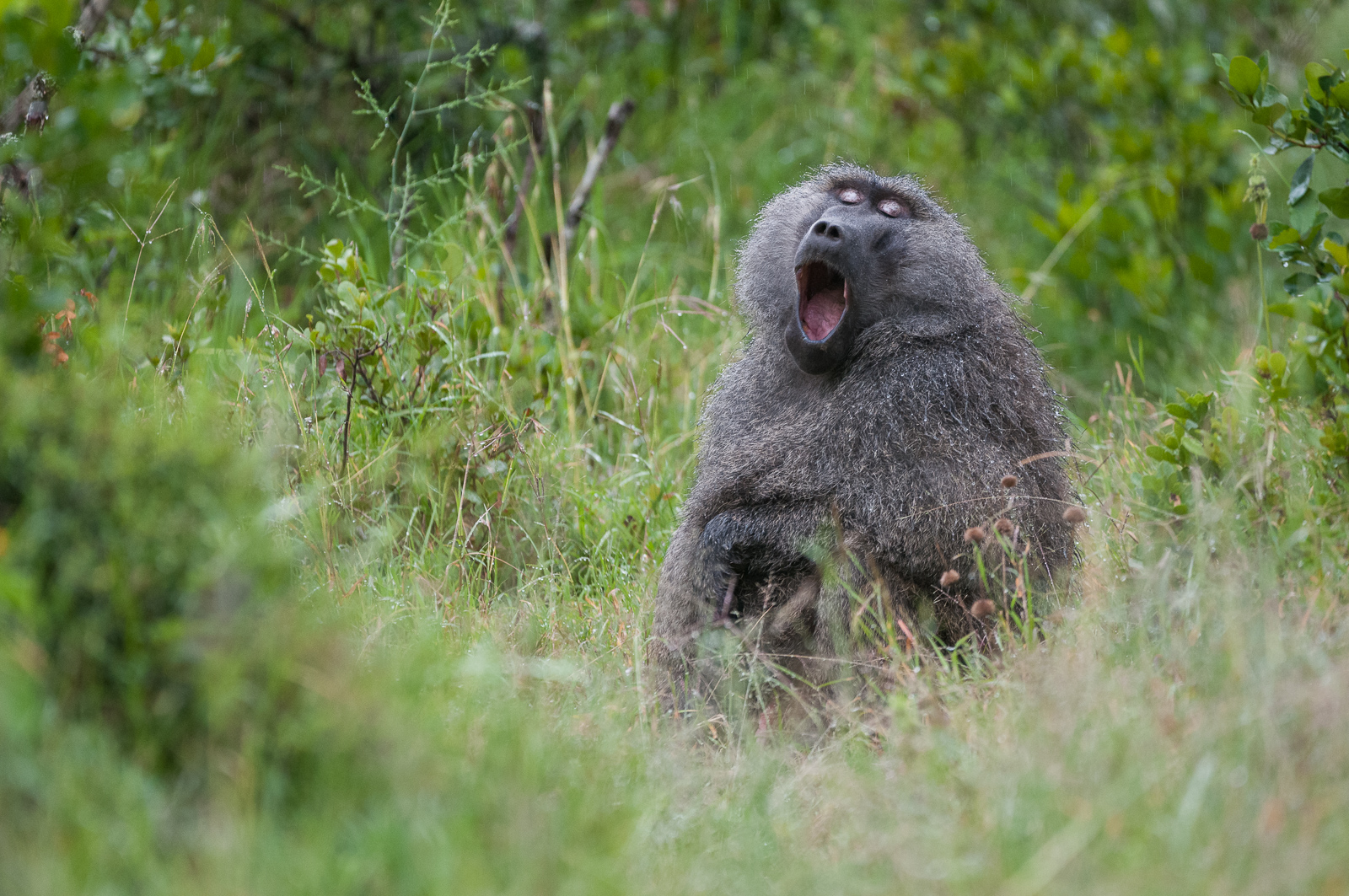 This olive baboon didn’t seemed too bothered by all the rain and let out a big yawn just as I snapped the shutter. The locations was Laikipia in Kenya. Again, if this post appears and then disappears (or doesn’t appear at all), it’s because I’m in the process of changing service providers. All should be back to normal sometime on Wednesday.
