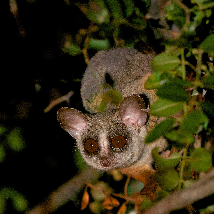 Bush babies are one of the world’s smallest primates. Also known as galagos, they are fairly widespread in Africa but rarely seen because they are strictly nocturnal. We saw this guy on our way back to camp on a late game drive in the Laikipia region of Kenya. We searched for quite a while with our spotlight before finally finding him/her. Credit goes to Karen for her work with my remotely triggered flash equipment, ensuring that the bush baby’s eyes were photographed without any red eye.