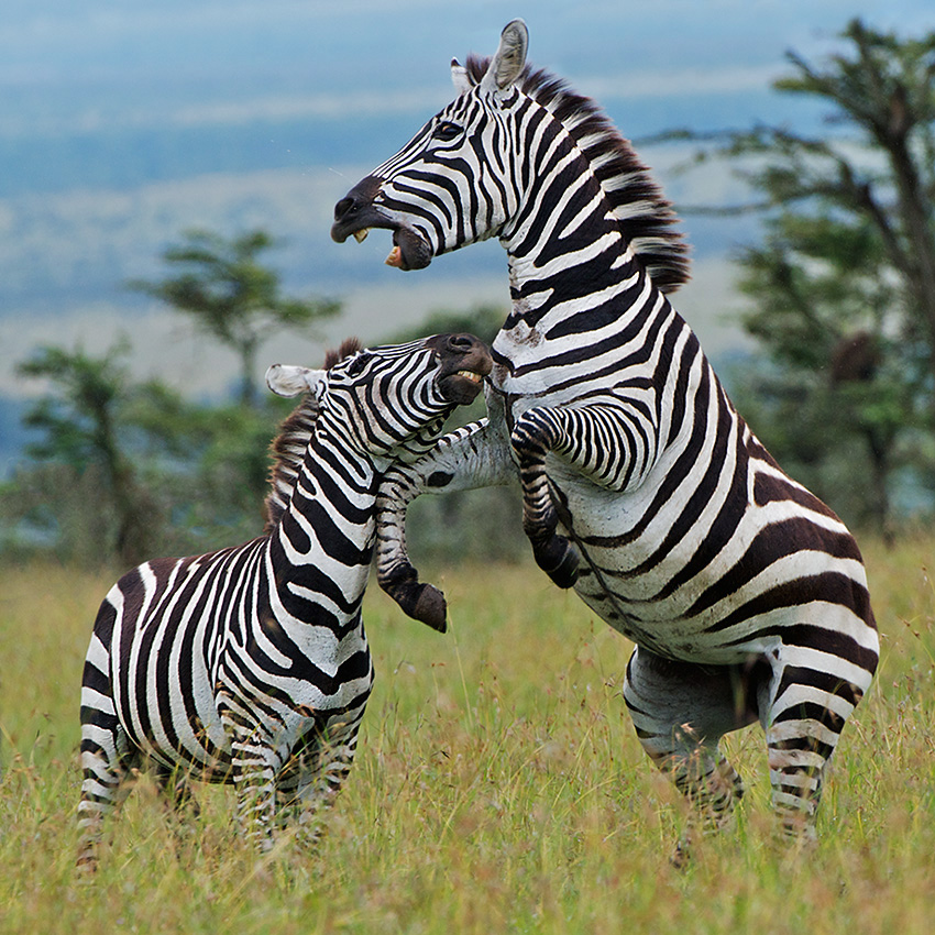 I took quite a few shots of zebras fighting. These two guys were going at it in a place called Laikipia. I always liked the human-looking teeth of zebras, as if they’re wearing a set of those fake chompers.