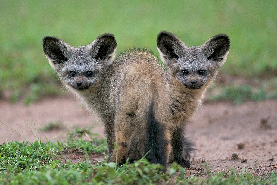 I returned early this morning from my trip to Kenya. Overall it was a great two weeks, with plenty of outstanding photo opportunities and new species like rhino, serval and gerenuk to photograph. This is the time of the short rains in Kenya so everything was nice and green. And babies were everywhere — like these two bat-eared fox pups. I had tried photographing bat-eared foxes in Botswana but could never get close enough. They are very skittish and usually run before you can get within range for frame filling photos. In Kenya, it was the same, but I kept trying and finally got these month-old pups to let their curiosity get the best of them. I took many photos as they played around the den, but liked this symmetrical portrait best, almost as if they are Siamese twins coming from the same furry body. In a future post I’ll send the mother with the pups so you can see just how small these little guys are.