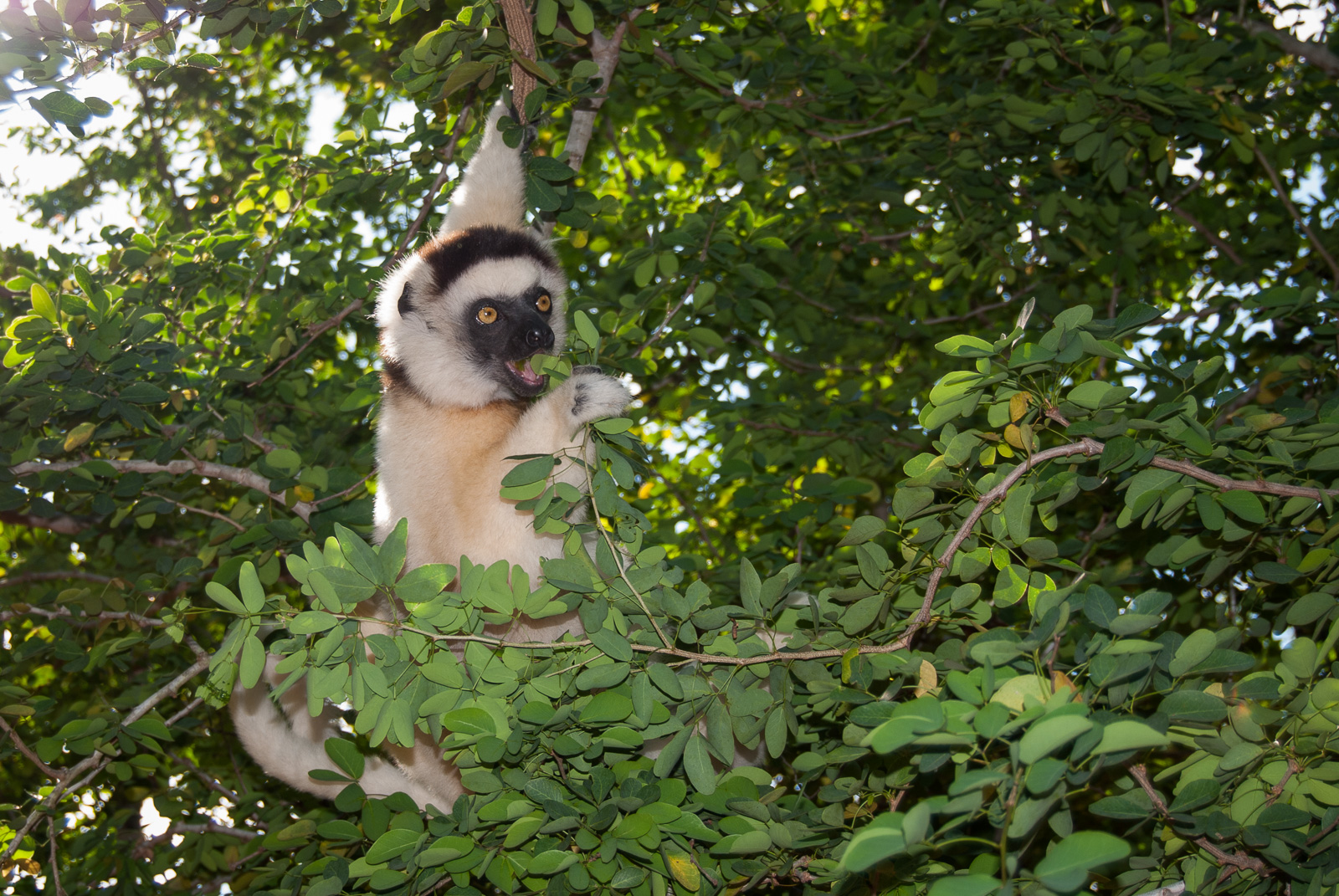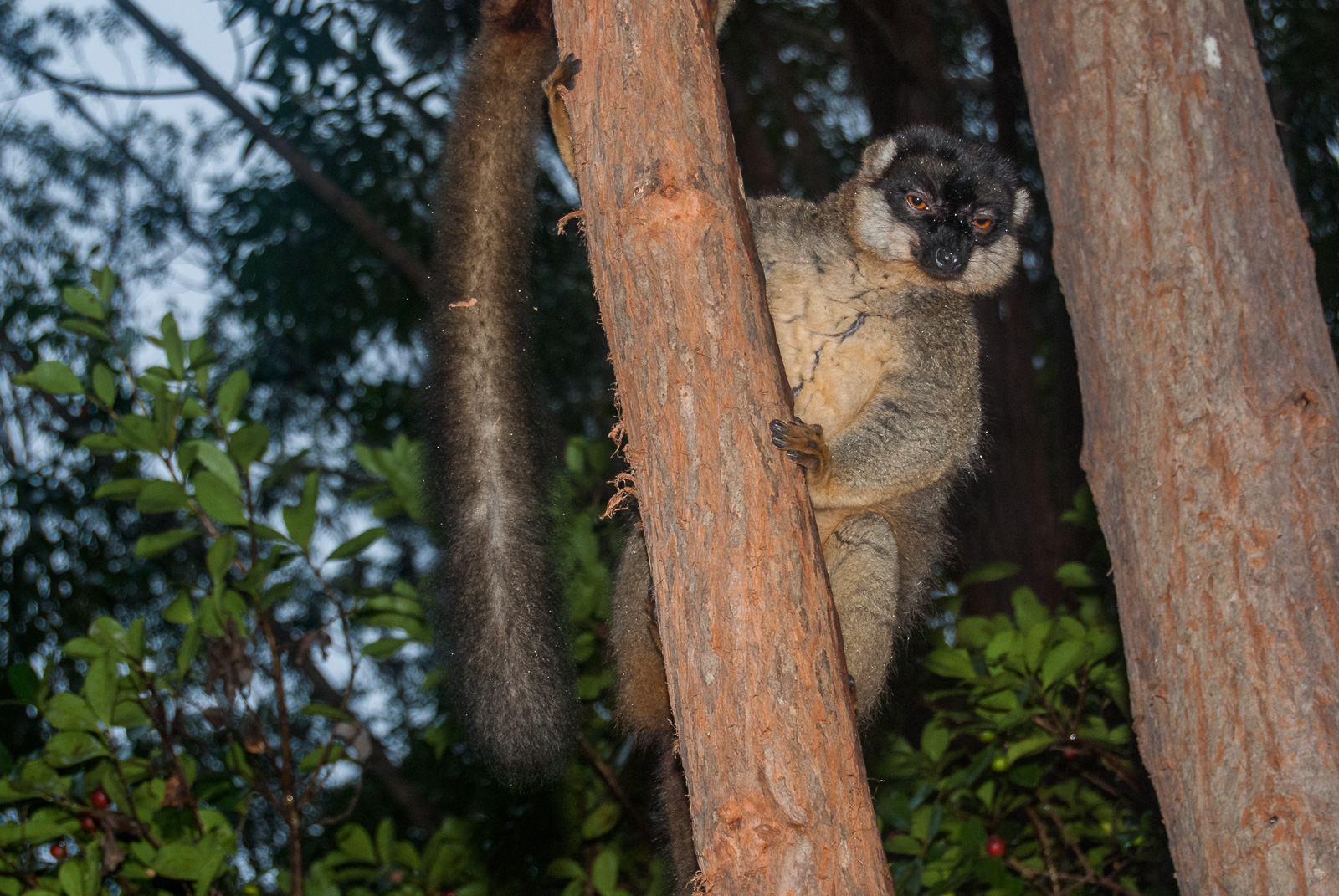 This young red-bellied lemur was part of a free ranging troop that took up residence in Parc Ovoloina on the northeast coast of Madagascar. All lemurs are endangered. The red-bellied is listed as “Vulnerable” by the IUCN due to shrinking habitat from continued slash and burn farming practices throughout its range.