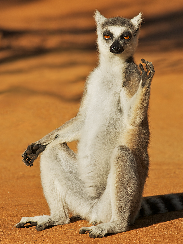 This one is from my trip to Madagascar back in 2007. Of all the lemurs (53 different species depending upon who’s doing the counting) the ring-tailed is perhaps the best known. They’re latin name is Lemur Catta — appropriate because they meow somewhat like a cat. This one was either waving to say hello, or telling me to get the camera out of her face.