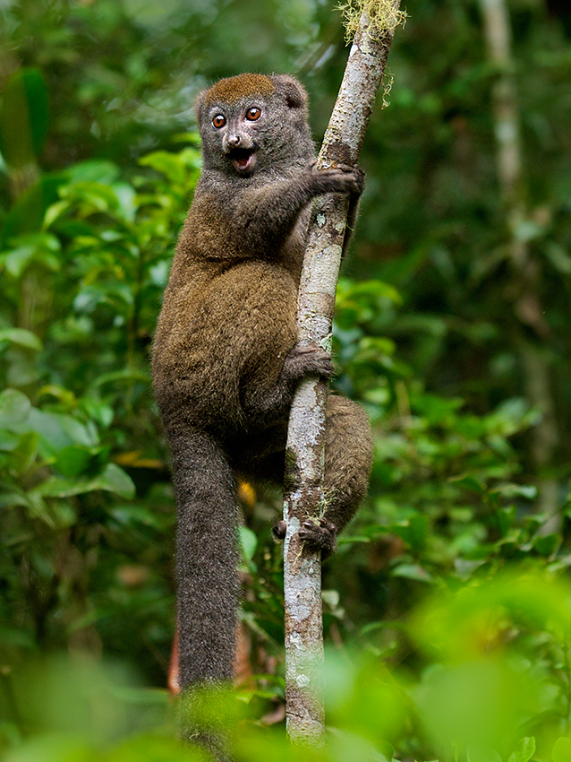 Seems like as good a day as any to post a lemur. This particular guy is an eastern grey bamboo lemur and I spotted him in central Madagascar in Andasibe-Mantadia National Park. There are several species of bamboo lemurs, or as they are also known, gentle lemurs. They get their name due to the fact that they primarily eat bamboo. It is unknown, however, how they detoxify the high level of cyanide that is found in bamboo. Nikon D200 with Nikkor 80-200mm lens (at 120mm) ISO 400, f/2.8 at 1/125th of a second