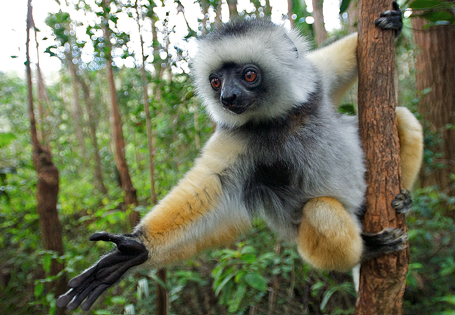 Sifakas are a genus of lemur named for their “shi-fak” alarm call. There are several different species of sifaka, with this guy, the diademed sifaka being the largest among them. Diademed sifakas also happen to be one of the most interesting looking of all the lemurs, with their red eyes and golden, black and white fur. This was one of only two or three diademed sifakas that I saw while in the forests of Madagascar.