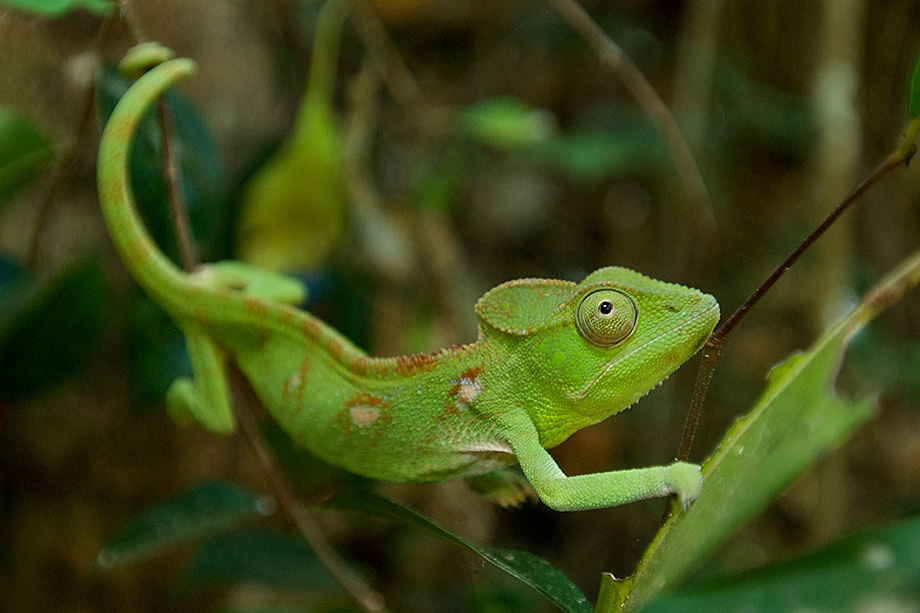 Seems to be the week of the eye. This one belongs to a Parson’s chameleon. Chameleons are pretty amazing creatures — they can look in different directions at the same time, they have a tongue that shoots out of their mouths at lighting speed to catch prey, they can change colors, etc. What they’re not good at, however, is making a quick getaway, so once found, they’re easy to photograph. For this shot, taken in central Madagascar, I was only about a foot away.