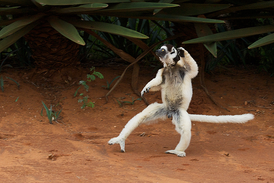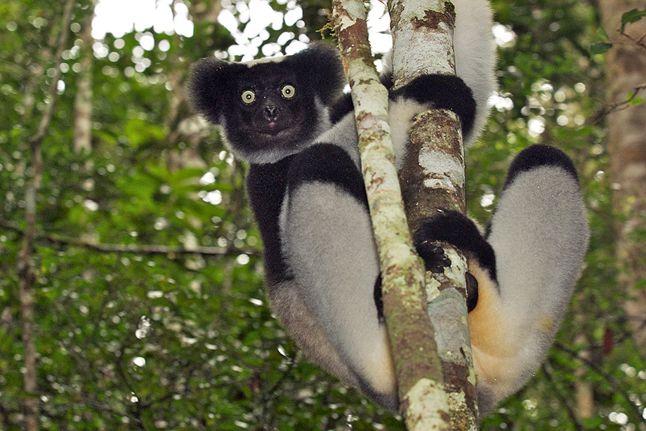 Some of you might remember these guys — the indri indri lemurs (and no, that’s not a typo, indri is repeated in the offical name). They are the largest of all the lemurs at nearly four feet tall, and 21 pounds. Even so, they can be incredibly acrobatic while jumping from tree to tree. As you can see from this guy, they also look a bit like stuffed animals.