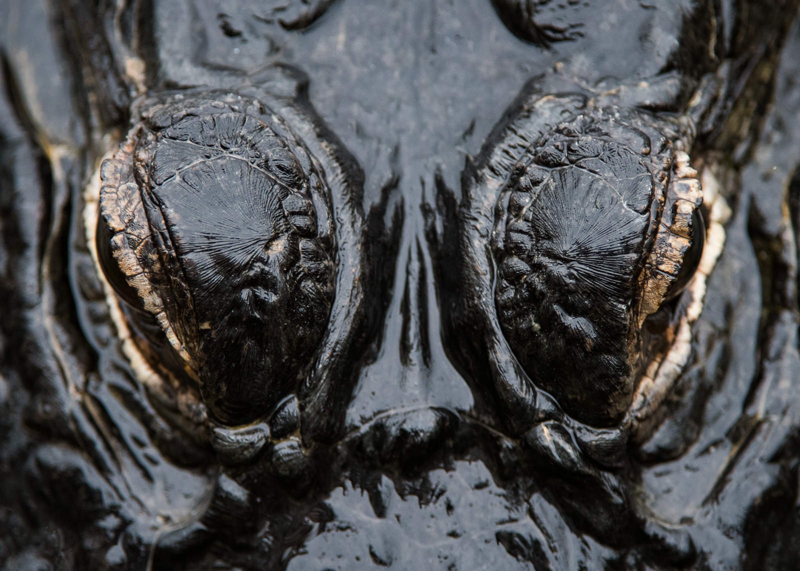 Perfectly adapted to its swampy world, the top of an alligator’s head is flat, armored, and built for stealth. Its eyes, ears, and nostrils are all positioned on top, allowing the gator to see, hear, and breathe while the rest of its body remains hidden just below the water’s surface. The skin is rough and ridged, dotted with bony plates that offer protection and help regulate body temperature. Tiny pits near the snout detect vibrations and movement in the water, giving the alligator an almost sixth sense for approaching prey. In this image, I went very tight on the head and eyes from directly above the gator. Shot in Big Pine Key in the Florida Keys. Nikon D500 with Nikkor 200-400mm lens (at 400mm) ISO 800, f/4 at 1/400th of a second.