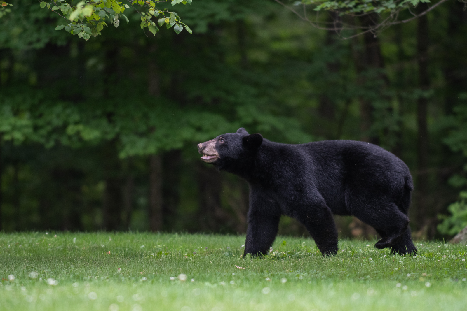 It’s been about a month since we’ve seen any bears in the yard, but on Tuesday my wife my father (who had stopped by for a visit) and I watched as a young male approached the apple tree in our backyard and stood up to examine the branches for any fruit. I grabbed my camera a bit too late for the standing shot, but was able to snap quite a few other images of the bear. He then proceeded to head toward the back of the yard and right past my camera trap, setting it off. Unfortunately, he was moving in the wrong direction and I only captured butt shots. This was around 3 in the afternoon. Tonight I decided to check the trap to see if any other visitors had come by and was pleased to see that the same bear returned from the other direction four hours later at 7:30 PM. I suppose he’s determined to be the first one to the apples should they fruit this year. Next week I’ll post some of the shots I got from my normal camera and lens setup. Nikon D810 with Nikkor 17-35mm lens (at 17mm) ISO 500, f/14 at 1/160th of a second, Cognisys camera box, trail monitor and remote flashes.
