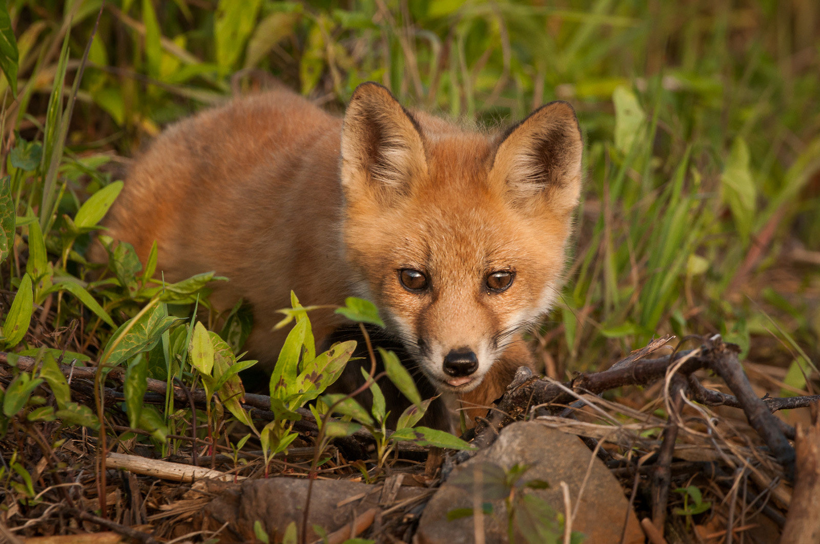 I met this young red fox years ago in Bombay Hook National Wildlife Refuge in Delaware. There were was a sibling as well and they were both waiting for mom to return with breakfast — which she eventually did — free-range grackle. Nikon D300 with Nikkor 200-400mm lens (at 400mm) ISO 400, f/6.3 at 1/320th of a second.