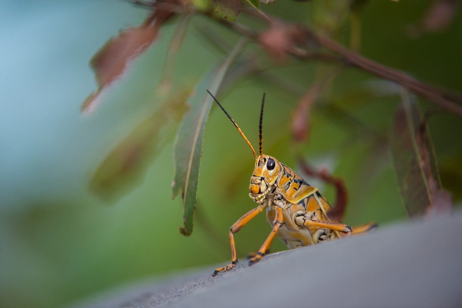 The eastern lubber grasshopper makes quite an impression in both size and color. They are usually a bright orange and typically about three inches long. They can be found throughout the southeastern United States. I photographed this one in Everglades National Park in Florida. Nikon D800 with Nikkor 200-400mm lens (at 400mm) ISO 800, f/4 at 1/1000th of a second.