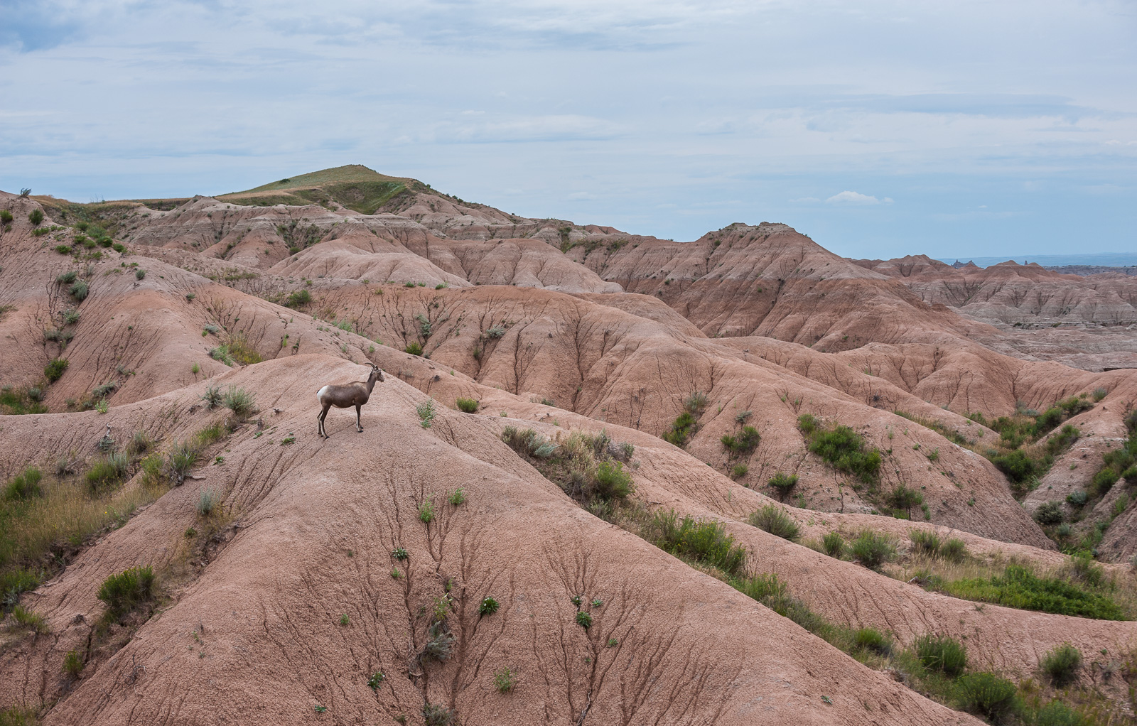 A bighorn sheep blends in with the surroundings at Badlands National Park in South Dakota. Nikon D700 with Nikkor 70-200mm lens (at 70mm) ISO 200, f/5 at 1/2000th of a second.