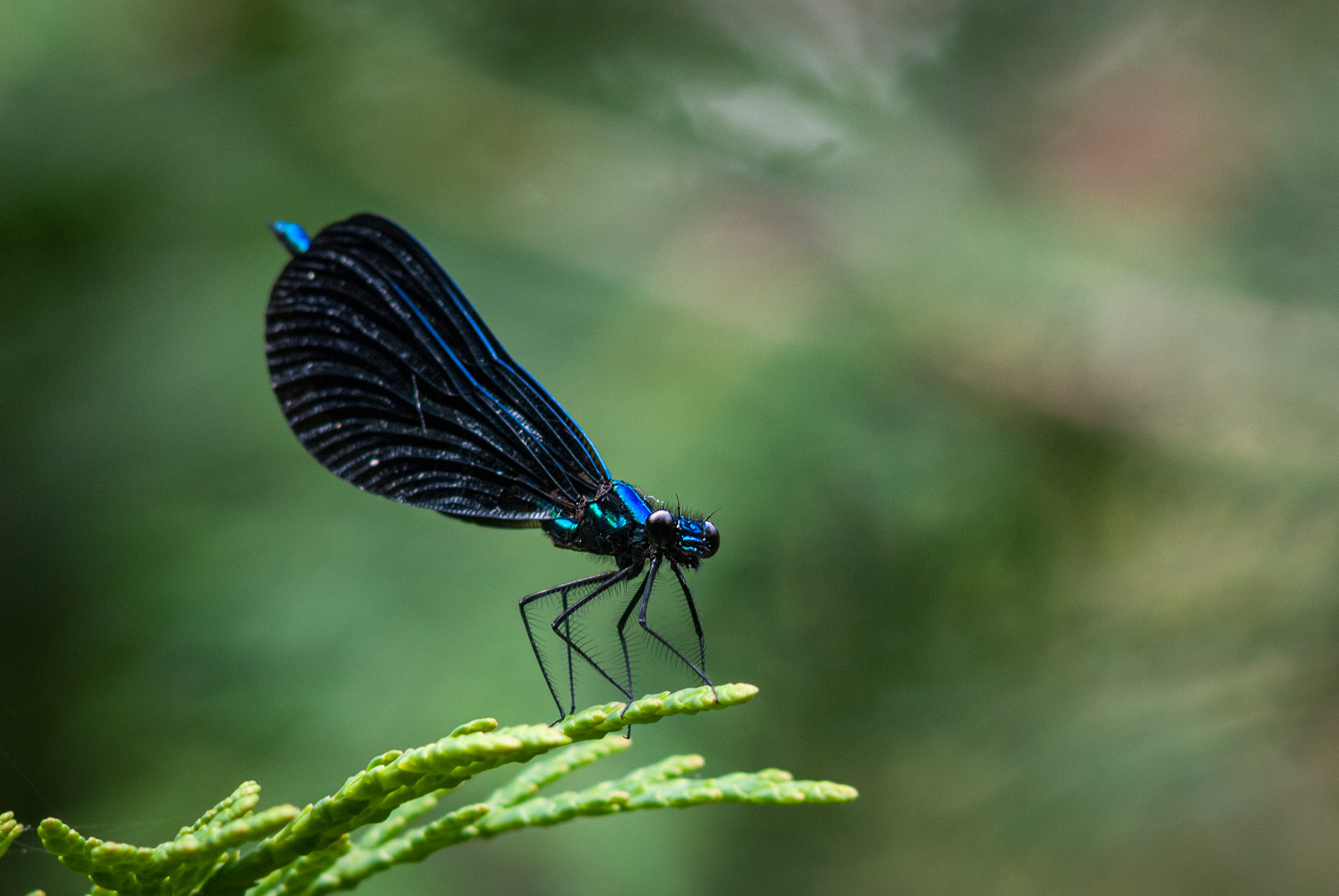 Here’s one for any entomologists out there. An ebony jewelwing damselfly (also known as the black-winged damselfly). I photographed this guy quite some time ago in Baxter State Park up in Maine. Back in those days, I was using extension tubes with my old 600mm lens to approximate a macro lens. Nikon D200 with Nikkor 600mm manual focus f/5.6 lens, Kenko extension tubes, ISO 400, f/5.6 at 1/13th of a second.