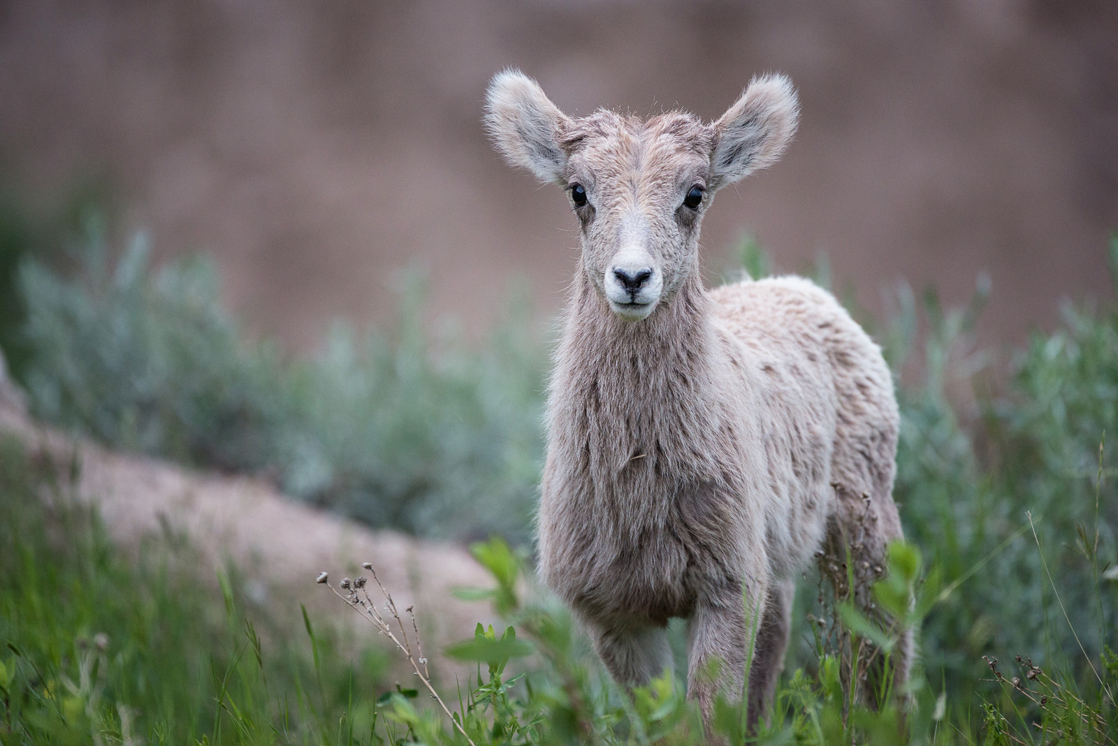 Badlands National Park is one of my favorite locations for wildlife. I almost always see bighorn and on this occasion, a few lambs with their mothers showed up. This little guy took a break from playing to pose for a quick portrait before getting back after it. Nikon D800 with Nikkor 200-400mm lens (at 400mm) ISO 1600, f/4 at 1/320th of a second.