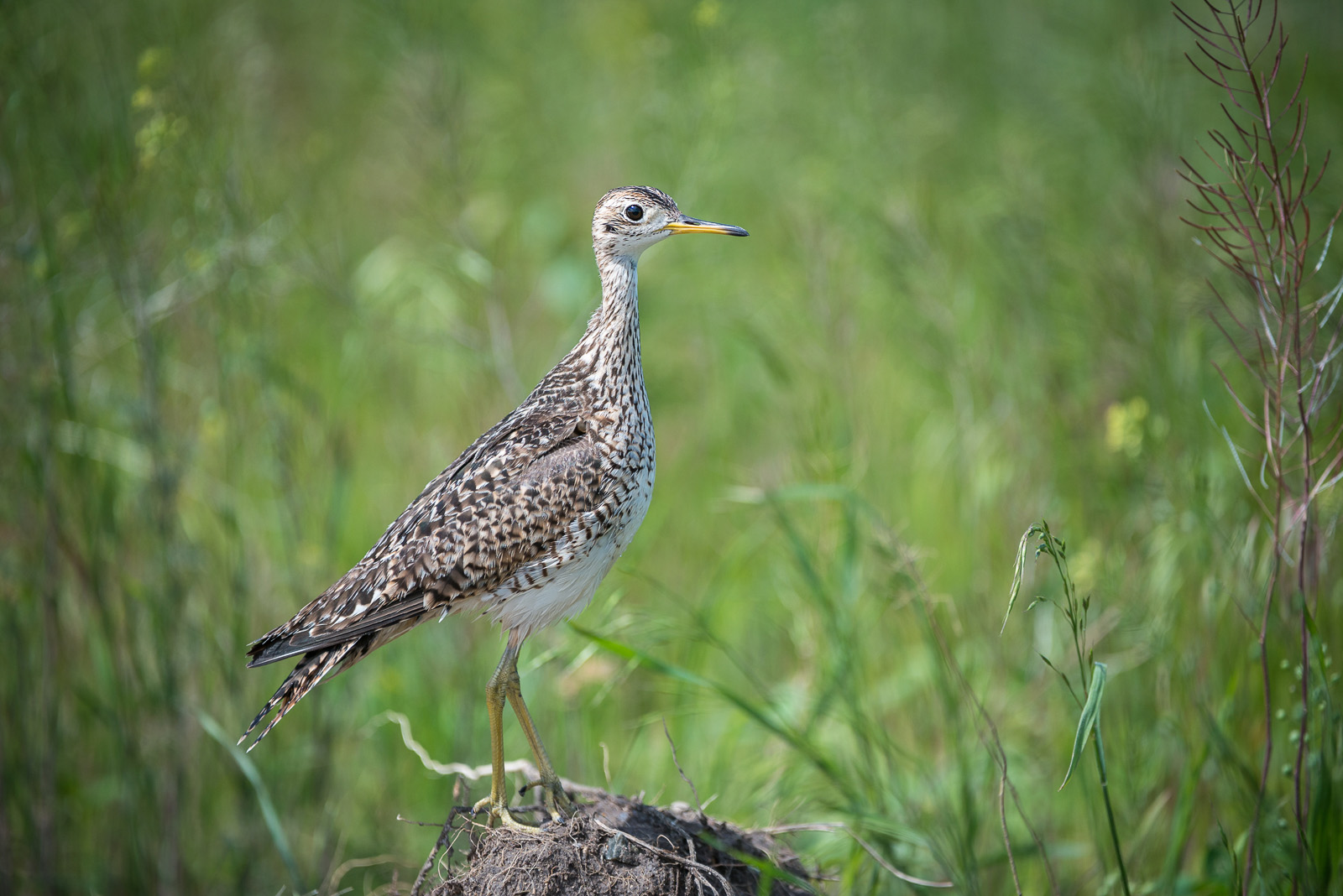 The upland sandpiper may not have the most spectacular coloring, but makes up for it by cutting a fine looking profile. You’d expect a bird like this to be found in coastal areas, but this species of sandpiper favors the open fields of the central part of the country. This one was photographed in South Dakota in Badlands National Park. As for diet, upland sandpipers will eat just about anything, including grasshoppers, crickets, weevils, beetles, moths, ants, flies, bugs, caterpillars, millipedes, spiders, snails and earthworms. All the good stuff. Nikon D800 with Nikkor 200-400mm lens (at 330mm) ISO 400, f/4 at 1/1600th of a second.