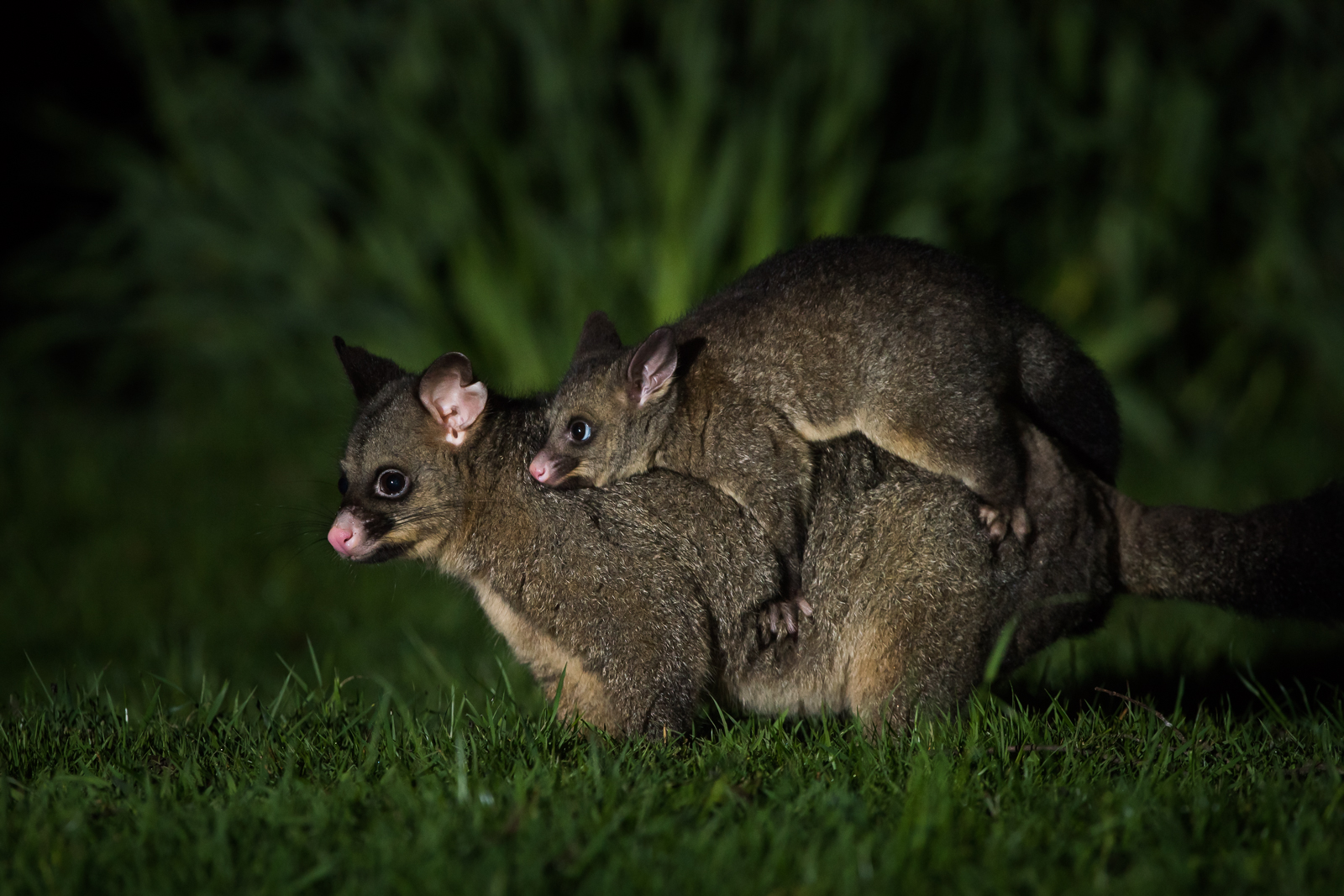 I spent my second to last night in Tasmania with legendary Australian guide, Craig Bushie Williams. While searching for quolls in a wooded clearing, we spotted this mother common brushtail possum carrying her young joey on her back. I saw quite a few of these possums in Tasmania (and also on mainland Australia) but this was the only one I saw with a joey. Nikon D810 with Nikkor 200-400mm lens (at 400mm) ISO 800, f/7.1 at 1/200th of a second, Nikon SB-900 flash unit