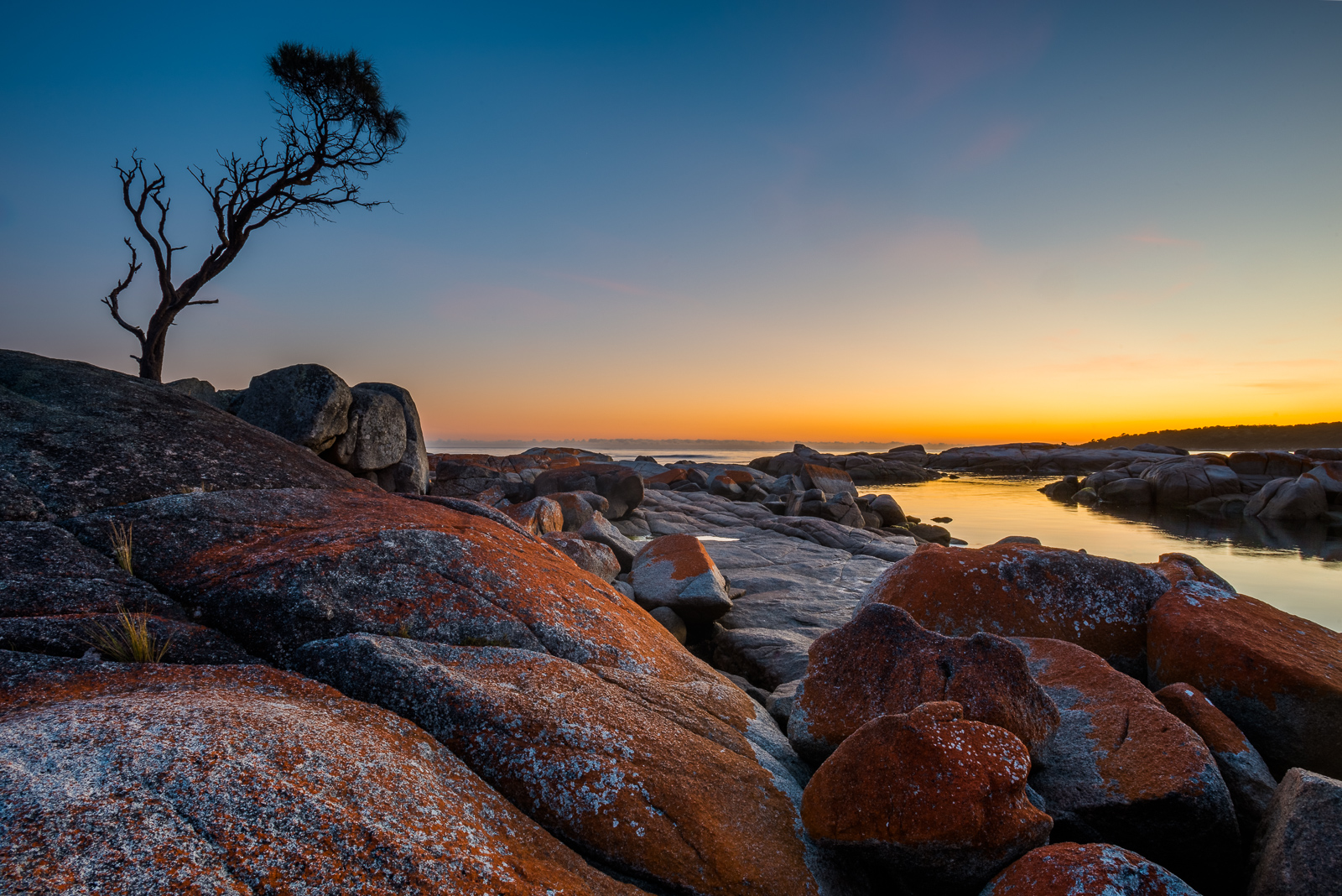 Another great thing about Tasmania — it has places with names like The Bay of Fires. Tyrion Lannister would feel right at home. At the southern end of the Bay of Fires is a place called Binalong Bay, where I took this photo just before sunrise. Orange lichen is characteristic of the Bay, although it’s not the reason for the name. In 1773, a sea captain saw the fires of Aboriginal people on the beaches and christened the name. Nikon D800 with Nikkor 17-35mm lens (at 17mm) ISO 200, f/18 at 1, .25, .5, 2, and 4 seconds.