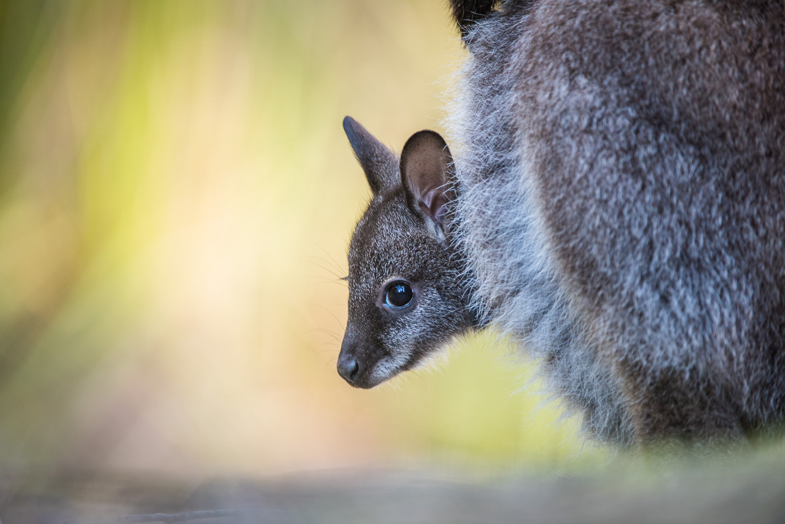 A Bennett’s wallaby joey taking a peak at the world from the comfort of mama’s pouch. You might remember the white wallaby I posted recently. This is the same species in the more common brown color. Nikon D810 with Nikkor 200-400mm lens (at 400mm) ISO 1600, f/4 at 1/125th of a second