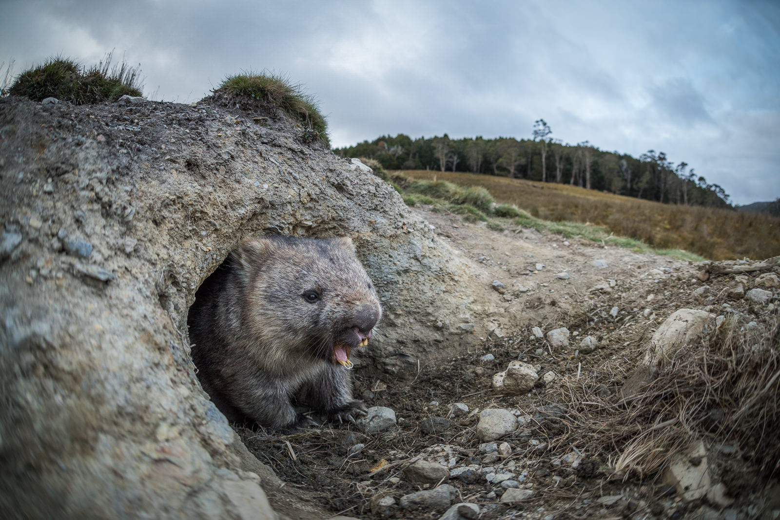 Wombats are funny creatures. They either scurried away as soon as I approached, or they let me get extremely close as if they didn’t have a care in the world. A few even pushed their noses up against my wide angle lens. This guy let me get extremely close, but had the added comfort of being at the opening of his burrow. I was using a fisheye lens when I captured this yawn. Nikon D810 with Sigma 15mm fisheye lens, ISO 800, f/4 at 1/400th of a second