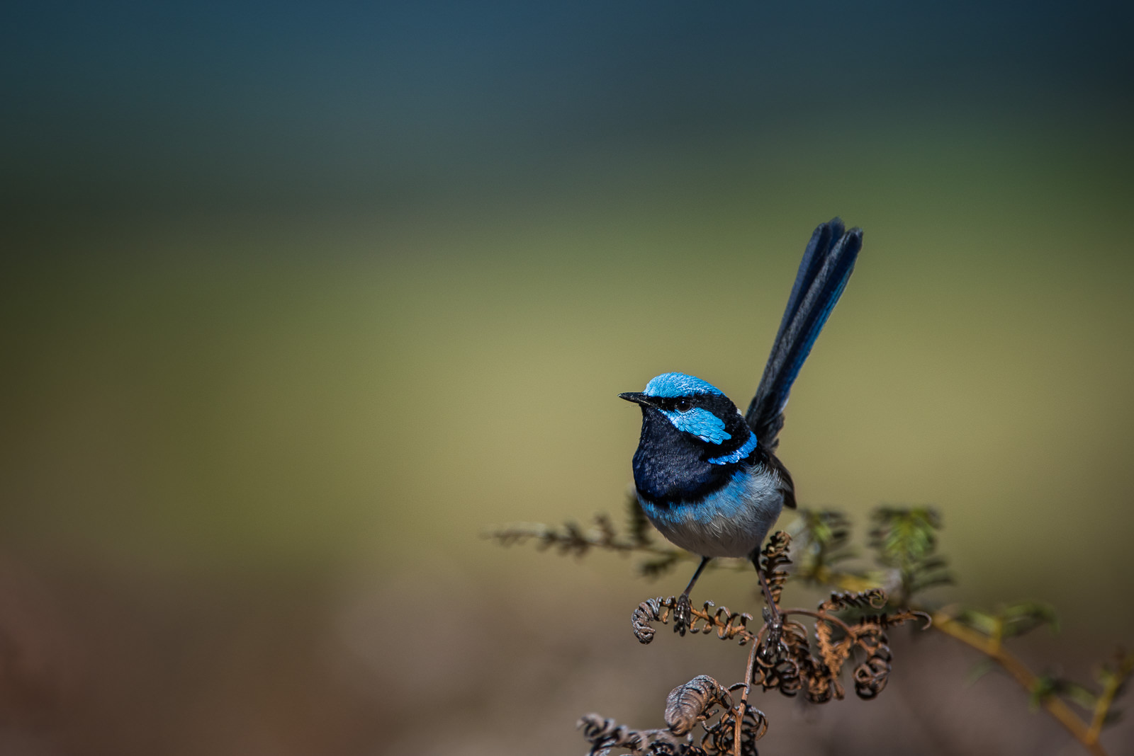 Much like the magnificent frigatebird and the resplendent quetzal, the superb fairy wren is a rather immodestly named bird. You can see why, however, with its bright blue feathers and upright tail. It is actually a fairly common bird in many parts of Australia but still a treat to see and photograph. I encountered this one in Narawntapu National Park on the northern coast of Tasmania. Nikon D810 with Nikkor 200-400mm lens (at 400mm) ISO 400, f/4 at 1/4000th of a second