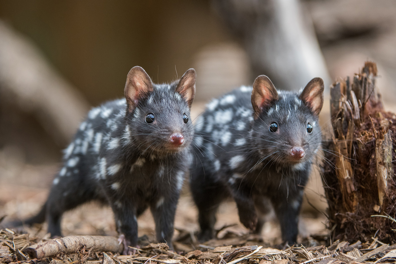 The only thing better than one eastern quoll is two eastern quolls. These guys were at the Bonorong Wildlife Sanctuary near Hobart Tasmania, a rescue center for many native species and one of many captive breeding centers for Tasmanian devils. Quolls are carnivorous marsupials, related to the devils. Nikon D810 with Nikkor 200-400mm lens (at 200mm) ISO 1600, f/4.5 at 1/250th of a second