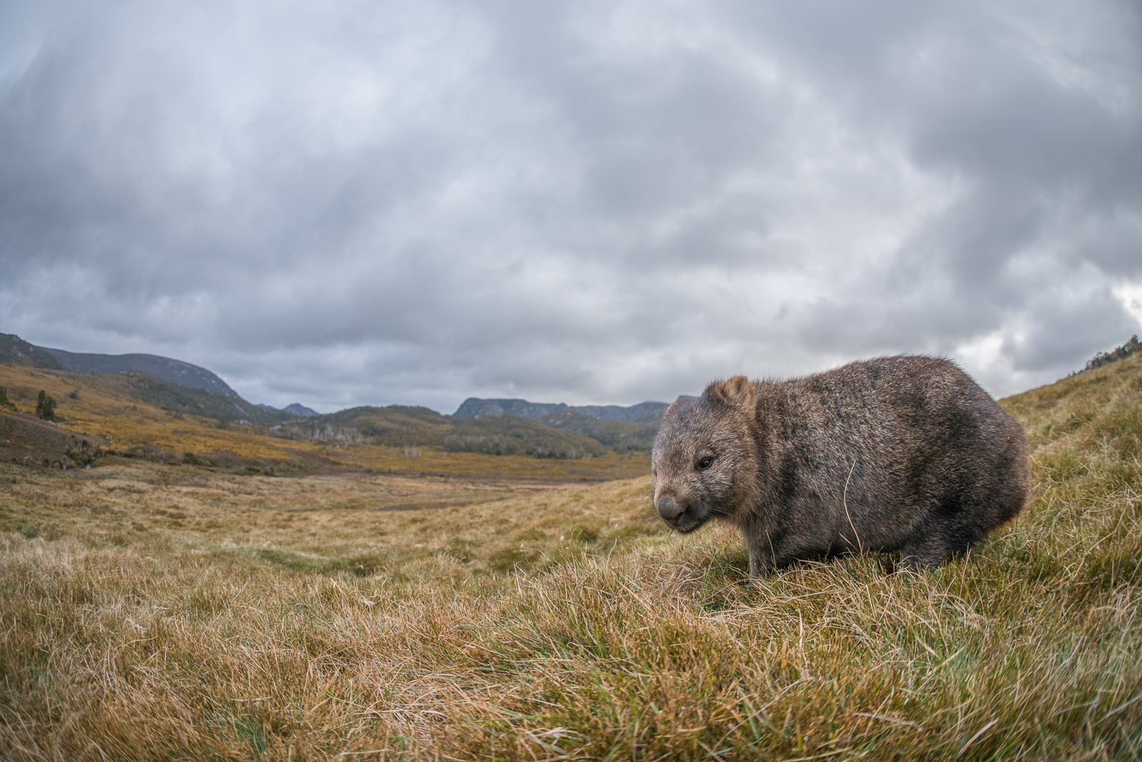 For this photo, I got up close to the wombat and used a fisheye lens to get as wide a view of its vast environment as I could. I also wanted to get in all those stormy clouds above the distant mountains. Nikon D800 with Sigma 15mm fisheye lens, ISO 800, f/4 at 1/1600th of a second