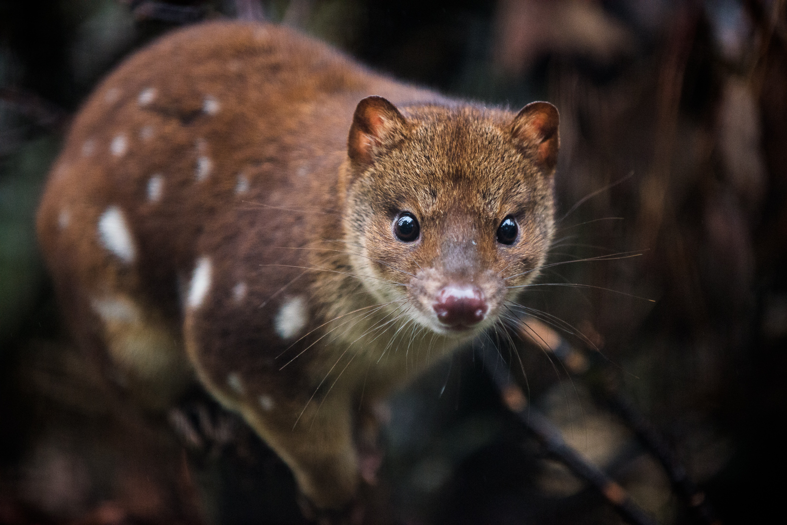 I met this spotted quoll just outside of Cradle Mountain National Park at a captive breeding center for the critically endangered Tasmanian devil. There are two species of quoll in Tasmania, the eastern and the spotted. Like devils, quolls are also carnivorous marsupials. It was getting very dark when I took the photo so I had to crank the ISO up to 6400.